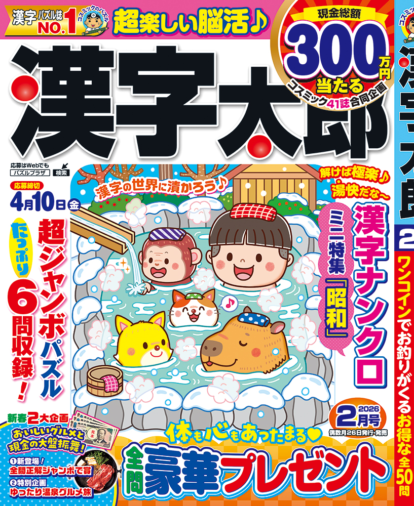 ①ジャンボパズル全問正解で現金1万円が3名様に当たる!