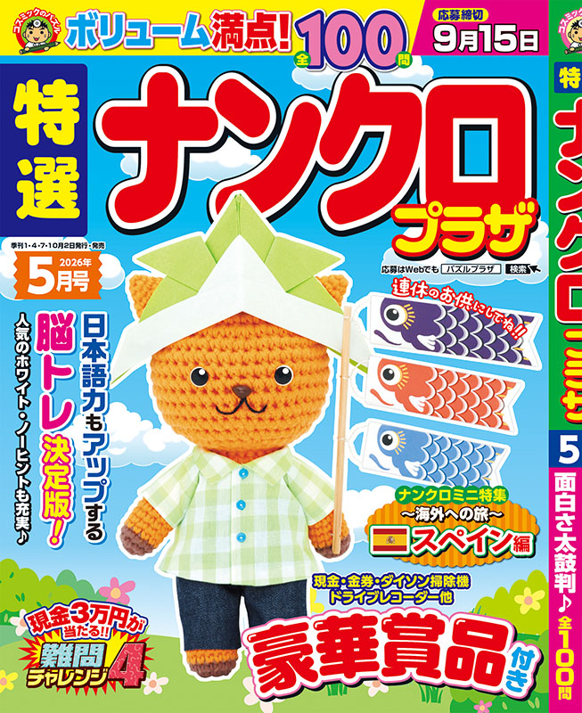■現金3万円が当たるチャンス! 「難問チャレンジ4」 ■ナンクロミニ特集 海外への旅・スペイン編 その他、人気のホワイト・ノーヒントナンクロも充実!