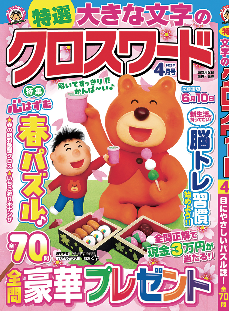 特集 心はずむ春パズル ・春の昭和歌謡クロス ・春の俳句アロー ・春の郷土料理クロス ・いちご狩りボナンザ