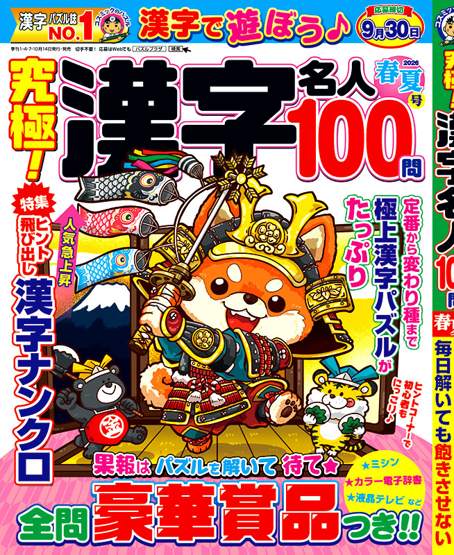 ミニパズルから4ページサイズの超ジャンボ漢字ナンクロまで、 ビギナーはもちろん上級者も楽しめます! 今号の特集は「ヒント飛び出し漢字ナンクロ」。 ナンクロの中でも特に人気の「飛び出し」が盛りだくさんです♪